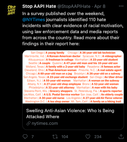 During the COVID-19 pandemic, the surge in hate crimes against the Asian-American community is alarming. I felt compelled to amplify awareness and share the harrowing realities Asian Americans face today, urging the community to unite against racism.
