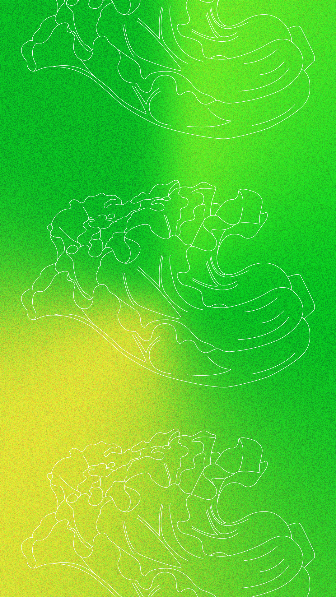 I designed wallpaper to honor a slice of the Asian-American experience. Featuring the unassuming Chinese cabbage, or pak choi, a symbol of prosperity in Chinese culture, this piece pays tribute to my grandparents' favorite vegetable, known for its enduring freshness.